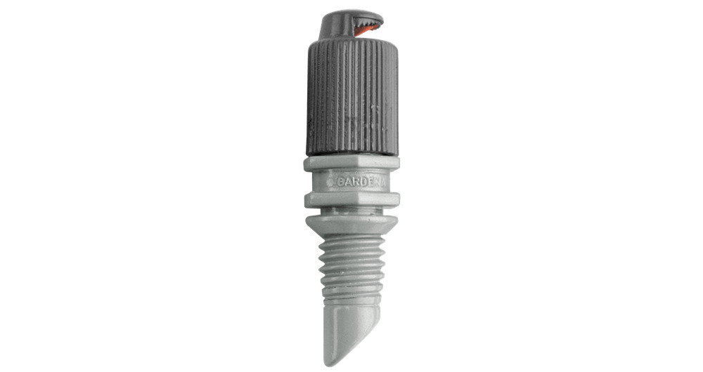 S rozprašovací tryskou 180° od společnosti GARDENA, jako součástí systému GARDENA Micro-Drip, je možné plošné zavlažování záhonů jemným postřikem. Dosah rozprašovací trysky je přibližně 3 m. Je možné prodloužení pomocí prodlužovací trubky (kat. č. 1377-20). Rozsah lze rovněž nastavit pomocí regulačního ventilu (kat. č. 1374-20). Rozprašovací tryska dokáže zavlažovat okolí v rozsahu 180°. Součástí balení je pět rozprašovacích trysek.