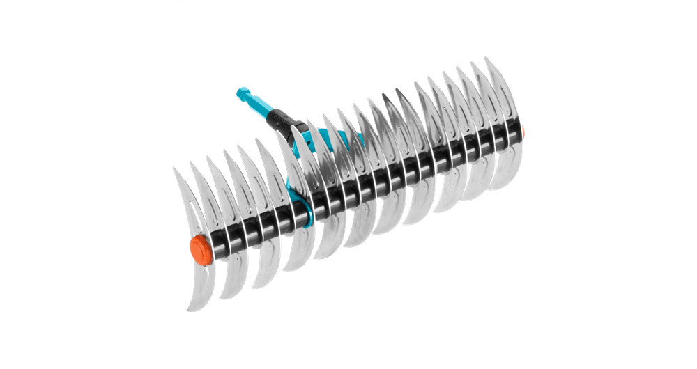 Díky řádkům s různými zuby jsou řezací hrábě z řady GARDENA combisystem vhodné pro práci po celý rok a představují dva nástroje v jednom. Špičaté hroty na jedné straně umožňují odstraňování mechu a travní plsti pronikáním několik milimetrů hluboko do země. Pracovní šířka je 35 cm. Při otočení hrábí mohou zaoblené a husté hroty shrabávat listy, zahradní odpad a dokonce i kameny. Všechny hroty jsou pozinkované a lisované a jsou tak korozivzdorné. Řezací hrábě jsou vhodné pro všechny násady z řady GARDENA combisystem, kdy GARDENA v závislosti na výšce postavy doporučuje násadu délky 180 cm. Záruční lhůta je 25 let.