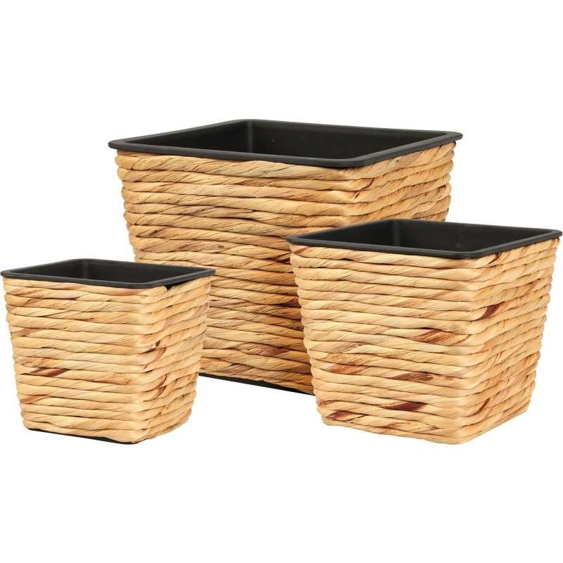 PLANT POT SQUARE, WATER HYANCINTH WEAVING (EICHHORNIA CRASSIPES), SET OF 3PCS: SMALL: 12,8X12,8X12CM, MEDIUM: 16X16X14CM, LARGE: 20X20X17CM, NATURAL COLOUR, WITH HOLE, STICKER INSIDE/ PLANT POT SQUARE SMALL(8720573 859363), 128X128X120MM, Barcode Sticker (SB22)/ PLANT POT SQUARE MEDIUM(8720573 859370), 160X160X140MM, Barcode Sticker (SB22)/ PLANT POT SQUARE LARGE(8720573 859394), 200X200X170MM, Barcode Sticker (SB22) / CFT 3,08,(8.640/40ft HQ)
