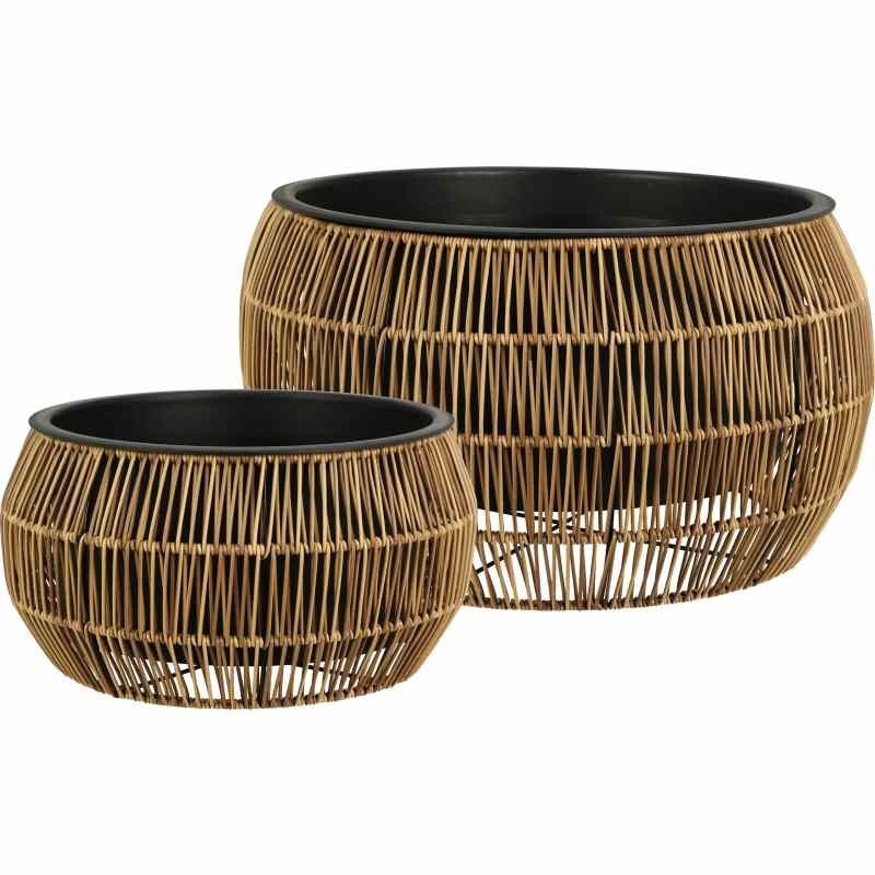 PLANT POT ROUND WITH PLASTIC INSERT POT, POLY RATTAN NEW WEAVE, SET OF 2PCS: 1. DIA 37CM X HEIGHT 19CM, 2. DIA 48CM X HEIGHT 26CM, BROWN COLOUR (3BR20 AND 3BR24), EACH PIECE WITH HANGTAG, ASS.:2 Sizes, Hangtag (HT21)/ PLANT POT ROUND D37H19CM(8720573 856553), 370X370X190MM, Hangtag (HT21)/ PLANT POT ROUND D48H26CM(8720573 856584), 480X480X260MM, Hangtag (HT21) / CFT 4,76,(960/40ft HQ)