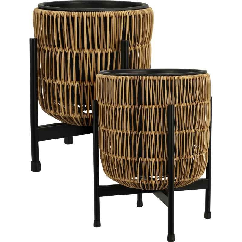 Sada květináčů ve stojanu kulatých 2 ks 28 / 37 cm polyratan