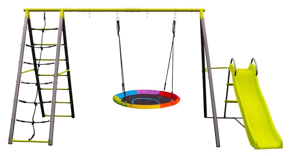 Jak dopřát dětem spoustu skvělé a zároveň bezpečné zábavy? Pořiďte jim zahradní set s houpacím kruhem, lezeckou stěnou a skluzavkou. Na kruhu se děti pohodlně pohupují, skluzavka je zabaví a zlepší jim fyzičku a lezecká stěna je motivuje zkusit něco nového.