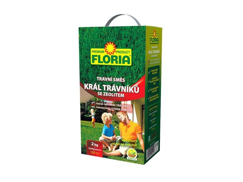 Směs travní FLORIA KRÁL TRÁVNÍKŮ 2 kg FLORIA Travní směs Král trávníků je travní směs nejvyšší kvality určená k zakládání reprezentativních ploch v okolí rodinných domů. Po použití této směsi travník vyniká pružným měkkých drnem a je odolný extrémním zátěžím. Vytváří středně jemný, hustý a dobře odnožující trávník. Obsahuje Zeolit, který na sebe poutá živiny a provzdušňuje půdu. Správným použitím má trávník stálou sytou barvu a nevyžaduje intenzivní ošetřování.