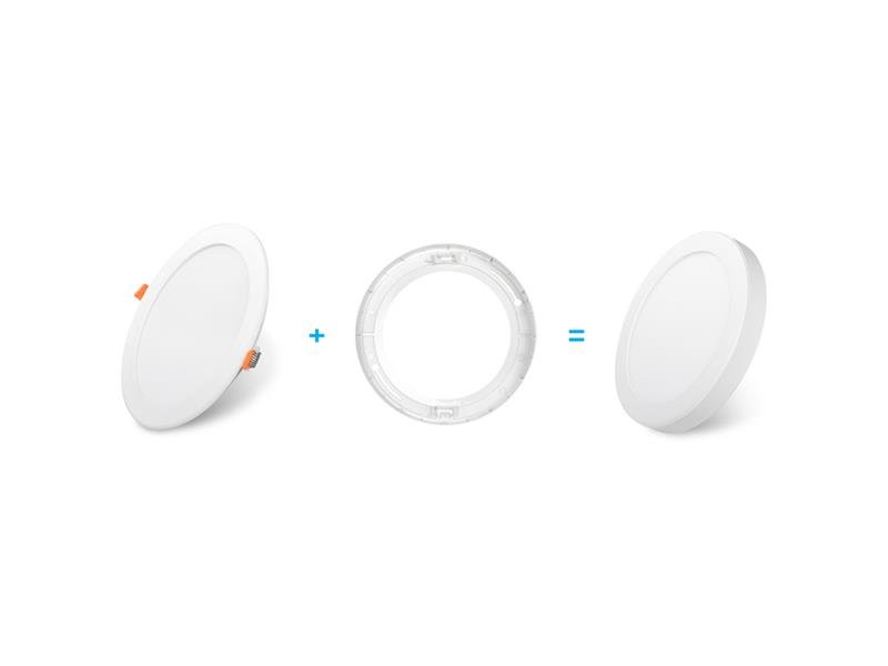 LED panel RETLUX RSM 109 6W Přisazené i vestavné vnitřní svítidlo typu LED-panel. Pro přisazenou montáž je určen plastový rámeček (součást balení), pro zápustnou montáž se rámeček nepoužije.