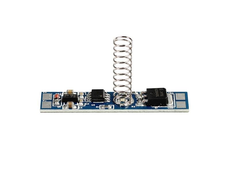 Spínač dotykový ON / OFF + stmívač + paměť TD311 do AL profilu Spínač do AL profilů je určen k ovládání především LED pásků dotykem prstu. Spínačem je možné pásky zapínat/vypínat nebo stmívat. S ohledem na jeho malé rozměry můžete plošný spoj bez nutnosti úprav umístit do většiny Al profilů. Zapínání/vypínání spínače se provádí krátkým přiložením prstu nebo dlaně v místě, svítící LED kontrolky, kterou oceníte zvláště v temných místnostech. Stmívání se aktivuje v zapnutém stavu přiložením prstu a přidržením v místě svítící kontrolky, dokud nenastavíte požadovanou úroveň jasu. Nastavený jas si spínač pamatuje jak po vypnutí svítidla, tak i po odpojení od napájecího napětí. Po vypnutí a následném zapnutí tedy svítidlo svítí přednastavenou intenzitou.