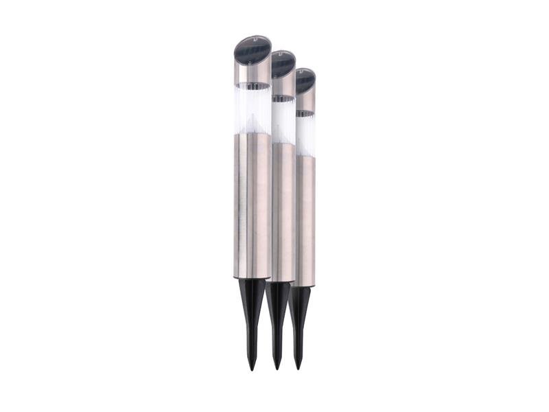 Sada 3 kusů moderních zahradních svítidel je vhodná pro osvětlení přístupových cest, restauračních zahrádek, jako dekorace do rodinné zahrady či terasy. Po setmění svítí trvale, lze ho pak jednoduše vypnout pomocí tlačítka. Montáž je také velmi snadná - pomocí tyčky a bodce se svítidlo zapíchne na zvolené místo. Doporučujeme umístit svítidlo na dostatečně slunné místo s dobou svitu alespoň 4 hodiny denně. Plocha solárního panelu by se měla udržovat v čistotě a ničím nezakrývat.