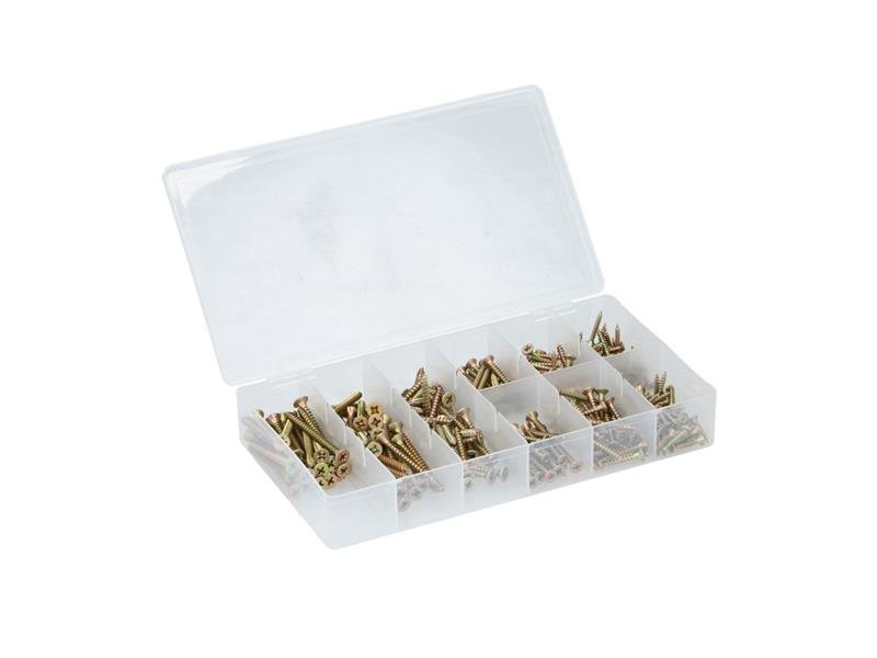 Každá domácí dílna by neměla fungovat bez pořádného příslušenství. Praktická sada vrutů různých velikostí vám nabídne ten správný materiál na připevnění různého příslušenství. Sada je uložena v plastovém organizéru a obsahuje celkem 332 kusů.