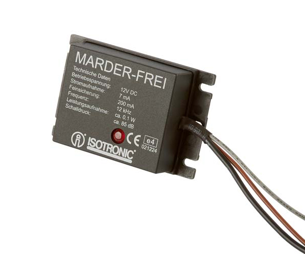 Žádné líčení speciálních pastí, žádné zabíjení jinak užitečných zvířat! Šetřete životní prostředí! Toto zařízení Vám poslouží k ekologickému odhánění kun z vašeho automobilu, zemědělského stroje, garáže i lodě (prokousávání pneumatik a ohlodávání kabelů a plastových částí). Tento přístroj vyhání a odpuzuje nejen šelmy kunovité (kuny, tchoře), ale i šelmy lasicovité. Hluk (zvuk), který přístroj vysílá, lidské ucho téměř neslyší. Každých 15 sekund po dobu 15 sekund (s přerušením dalších 15 sekund) vysílá tento přístroj velmi vysoký tón (o frekvenci 12 kHz). Instaluje se do motorového prostoru nebo do vstupního otvoru ve vozidle. Je třeba mít na zřeteli, aby ve směru vysílání bylo co nejvíc volného prostoru a aby ultrazvukovým signálem byla pokryta co největší plocha v motorovém prostoru. Ultrazvuk se šíří přímočaře jako světlo, to znamená, že za všemi překážkami nebudou tóny aktivní. V zemích EU je zásadně požadované, aby přístroje na plašení kun byli instalované tak, aby se mohli zapnout jen při vypnutí motoru automobilu, nikdy za běhu motoru.