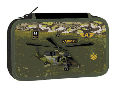Školní penál třípatrový, prázdný, o rozměru 190 x 110 x 60 mm.