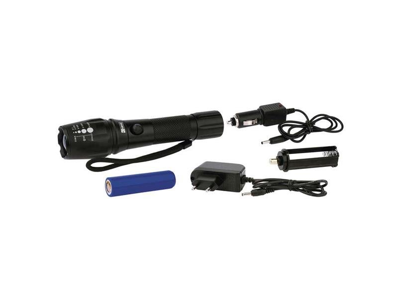 -zdroj světla - 5 W LED -napájení - akumulátor Li-Ion 18650 3,7 V/1 800 mAh nebo 3× 1,5V AAA (mikrotužka) -dosvit - 286 m (max. zoom), 35 m (min. zoom) -použití - outdoor -fokus - ano -doba svícení - 15 hodin -nabíjecí - z automobilu i napájecím zdrojem -doba nabíjení - 3,5 hodiny -maximální světelný tok produktu - až 300 lm -materiál - hliník (Al) -voděodolnost dle ANSI FL1 - ne -hák - ne -magnet - ne -LED indikace stavu akumulátoru - ne -LED indikace nabíjení - ano -ochrana proti přebití - ano -režimy svícení - 100 %, 75 %, 50 %, blikání, SOS, vypnuto -pulzně šířková modulace (PWM) - ne -příslušenství - napájecí adaptér + adaptér do automobilu + držák na 3× 1,5V AAA (mikrotužka) -barva - černá -rozměr - 190 × 40 mm -baterie součástí balení - ano -funkce anti-roll - ne -hmotnost - 206 g -životnost LED - 30 000 hodin -prodejní obal - 1 ks, plastový box