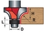 Fréza zaoblovací (vydutá) do dřeva, R12,7xD38,1xH19, stopka 8mm, EXTOL PREMIUM