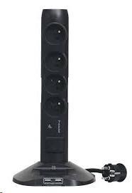 Legrand - stĺpik predlžovačka s prepäťovou ochranou + 2x USB nabíjačkou + 1x USB Micro USB čierny