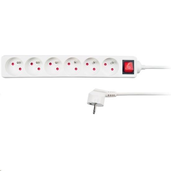 Solight prodlužovací přívod, 6 zásuvek, bílý, vypínač, 3m