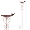 Kovové krmítko/pítko v měděné barvě je praktickým i dekorativním doplňkem pro vaši zahradu. Miska umístěná navrchu je ozdobena jedním drobným pěvcem, který přidává předmětu jemný přírodní prvek. Díky zápichu ho snadno umístíte do záhonu, truhlíku nebo přímo do země, kde se stane ozdobou pro vás a vděčnou občerstvovací stanicí pro opeřené návštěvníky.