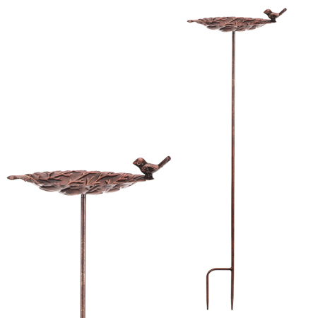 Kovové krmítko a pítko s elegantní měděnou barvou a originálním tvarem listu je ideálním způsobem, jak na své zahradě vytvořit příjemné a funkční místo pro ptáky. Díky zápichu ho snadno zapíchnete do země, záhonu či květináče, kde bude dobře viditelné a zároveň snadno dostupné pro opeřené návštěvníky. Jemný dekorativní motiv drobného pěvce na okraji dává tomuto praktickému předmětu přírodní kouzlo a zaručí, že bude vypadat skvěle v jakékoliv zahradní scéně či na balkóně.