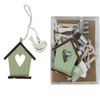 Sada zahradních dekorací. Sada obsahuje 10 dekorací. Rozměry : 2,5 - 7 x 0,4 cm, výška 7,5 cm. Barva : kombinace zelená s bílou. Materiál : dřevo, plech.