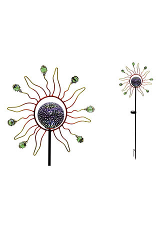 Slunce s LED světlem, kovová zahradní dekorace, zápich (baterie na solární dobíj