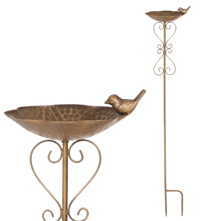 Zápich kovový - zahradní dekorace, list s ptáčkem.