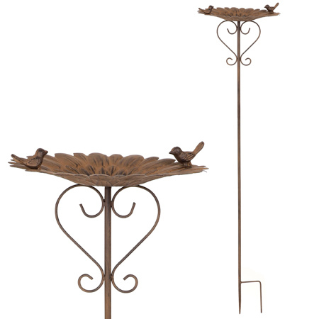 Zápich kovový - zahradní dekorace, list s ptáčkem.