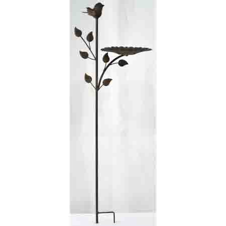 Zápich kovový - zahradní dekorace, list s ptáčkem.