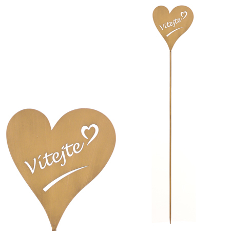 Kovový zápich v podobě srdíčka v měděné barvě s nápisem "Vítejte" je skvělým prostředkem, jak prokázat okolí svou otevřenost a zároveň dodat unikátní dekoraci vaší zahradě. Můžete jej snadno umístit na záhony, nechat vyniknout na volno v trávníku, nebo ozdobit okolí květin, či keřů. Zabere málo místa, a přitom bude výrazným bodem, který jen stěží někdo přehlédne. Kovová konstrukce zajišťuje trvanlivost a odolnost vůči povětrnostním vlivům, což znamená, že tuto dekoraci můžete nechat venku prakticky po celý rok. Tento zápich přidává do vaší zahrady nejen zajímavý estetický prvek, ale také osobitý charakter, a stane se výrazným bodem vaší celkové kompozice.
