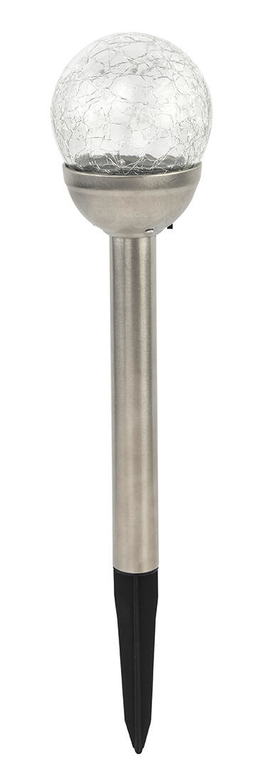 lampa solární KOULE 7,8cm, v.38cm, 1LED, čirá, nerez/sklo/PH