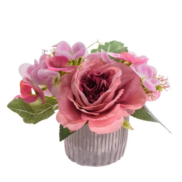 Umělé květiny v keramickém květináči, světle růžová, 6/36