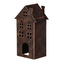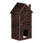 Zahradní dekorace v podobě kovového patrového domku bude netradičním doplňkem, který dodá místu opravdové kouzlo domova s možností světelného efektu. Domeček je celý plechový, v jednobarevném měděném až narezavělém provedení, a po obvodu má okénka, kterými mohou neodolatelně pronikat světelné paprsky. Domeček je sice s komínkem, ale nemá žádní horní otvor, takže se do něj hodí spíše LED svíčka než klasická čajová, která by kovový povrch příliš rozpálila. Nabízí se i hra s přirozeným světlem a stíny. Umístěte tuto ozdobu na místo, kam dopadají sluneční paprsky a uvidíte sami, jak bude okénky krásně pronikat světlo. I sama o sobě je to elegantní dekorace, která si zaslouží své místo na vaší zahrádce.
