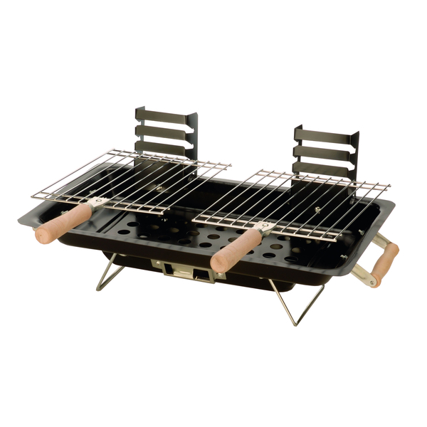 Zahradní mini gril s rozměry: 25 x 43 x 5 cm. Kovový gril s 2 samostatnými rošty. Skvělá volba pro zahradní a balkonové grilování. Velmi snadno se přenáší nebo převáží. Vhodný i pro výlety do přírody.