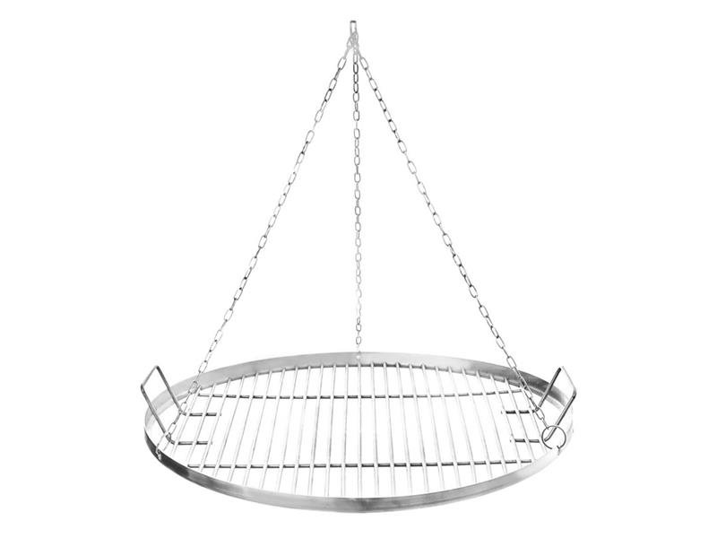 Závěsný rošt se dvěma uchy využijete na přípravu letních dobrot přímo nad ohněm. Na chalupu, na zahradu, do kempu… Zavěsit ho můžete na trojnožku. V naší nabídce buď litinová 111056 nebo set trojnožky a kotlíku nerez 111084. Využít by se dal také položený na větších kamenech kolem ohně.
