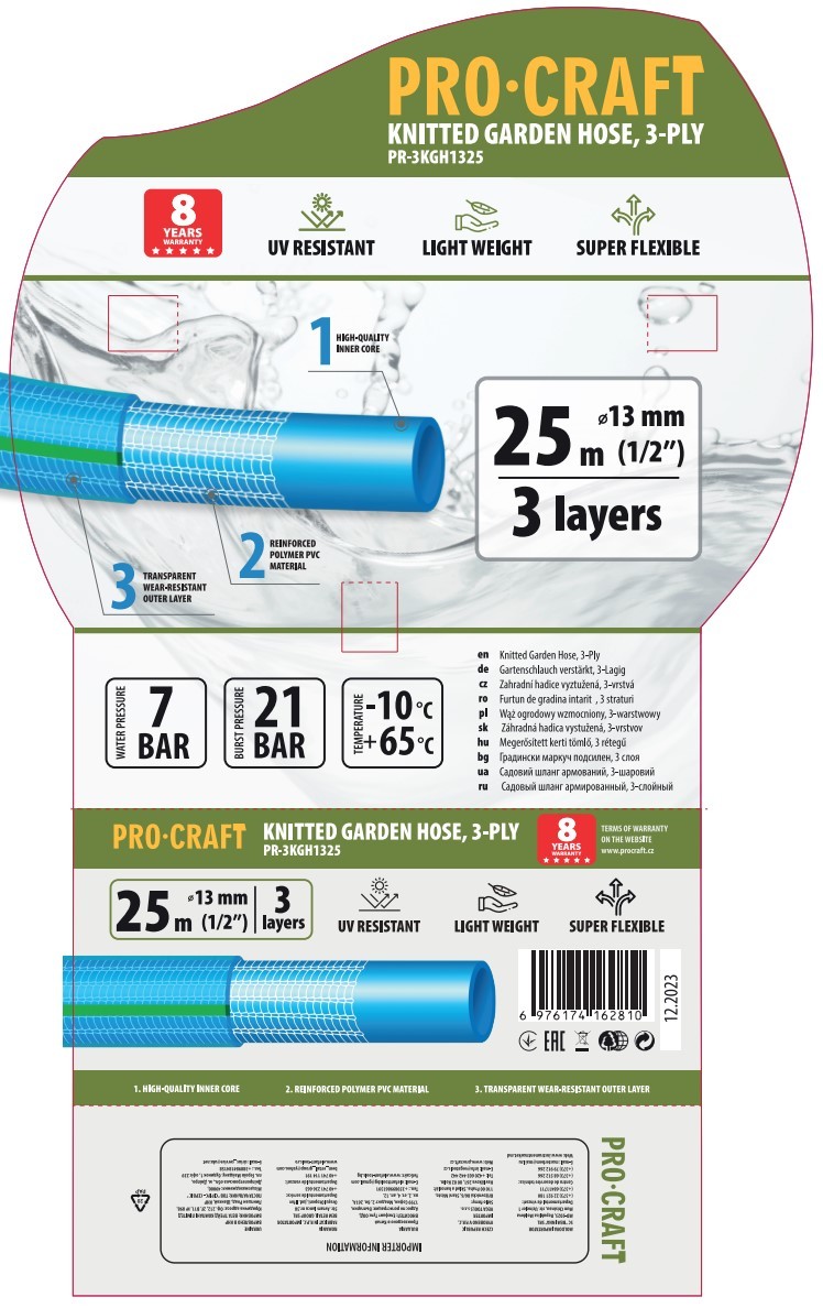 Zahradní hadicí Procraft PR-3KGH1325 3 vrstvy, 1/2" 25m | PR-3KGH1325