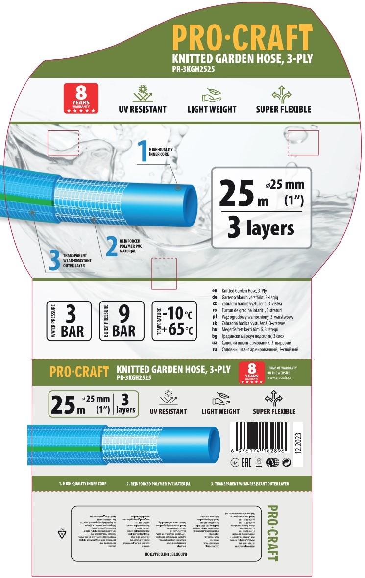 Zahradní hadicí Procraft PR-3KGH2525 3 vrstvy, 1" 25 m | PR-3KGH2525
