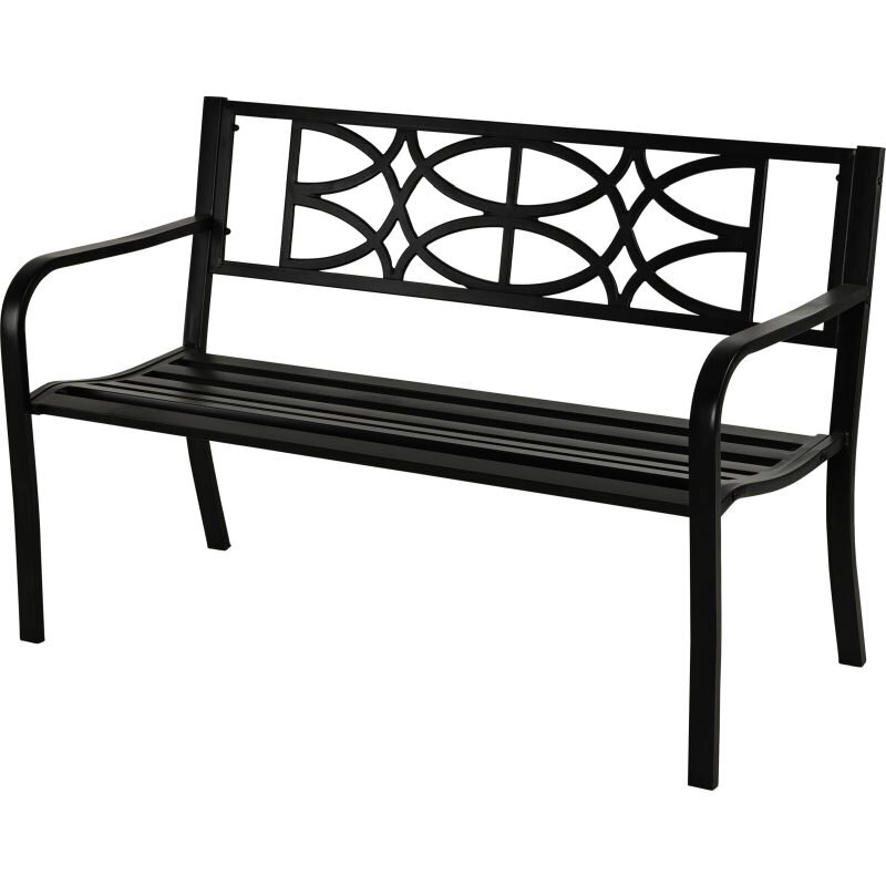 Tato zahradní lavice je ideální volbou pro vaši zahradu nebo terasu. Je vyrobena z odolného kovu a opatřena černým lakováním, což zajišťuje dlouhou životnost a odolnost vůči povětrnostním vlivům.