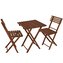 Set tvoří stůl a dvě židle, vyrobené z pevného bukového dřeva, které je díky tmavě hnědé lazurě chráněno před nepříznivými povětrnostními vlivy. Díky tomu se set hodí i pro venkovní použití a zůstane vám dlouho krásný. Praktické skládací provedení umožňuje snadnou manipulaci a skladování, takže nábytek nezabere mnoho místa, když jej zrovna nepoužíváte.