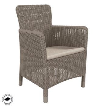 Design umělého pleteného ratanu v barvě Cappuccino zaujme na první pohled a křeslo díky stylovému a modernímu vzhledu zapadne dokonale do každého interiéru i venkovních prostor.