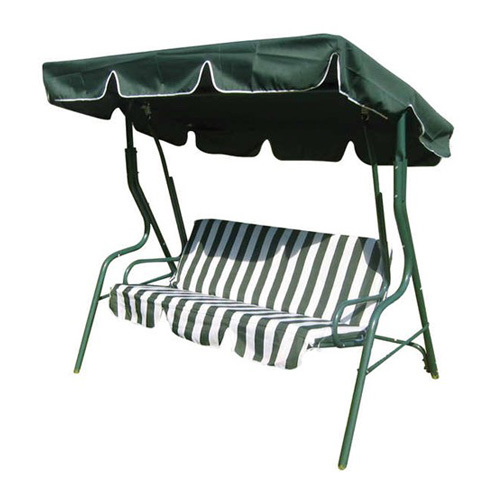 Zahradní houpačka s pruhovaným polstrováním vyniká svou pevností a širokou základnou. Houpačka má kovovou konstrukci zelené barvy ošetřenou práškovou metodou, a proto je vysoce odolná vůči UV záření i dešti. Navíc vás překvapí svou nosností, která je 220 kg. Polstrování sedáku a opěrky je z polyesteru v pruhované barvě. Výplň sedáku tvoří pěna o tloušťce 6 cm.