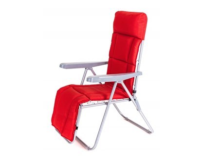 Polstrovaná skládací židle s podnožkou a možností polohování (5 pozic). Materiál: ocelová konstrukce s područkami, doplněna polstrováním o síle 5 cm z polyesteru 160 g, zajišťuje velice pohodlné posezení a relax. Nosnost židle je 100 kg. číst celé