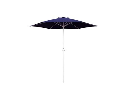 Slunečník plážový 230 cm s praktickou kličkou má kovovou konstrukci v bílé barvě, potahová látka - polyester 140 g. Slunečník je vysoký 217 cm, průměr spodní části kovové tyče je 3,4 cm Slunečník má 6 žeber 8 x 16 mm. Barva tmavě modrá.