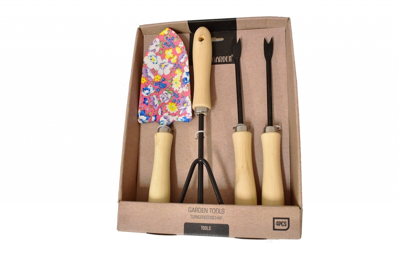 Lopatka, 2x škrabka na plevel, hrabičky. Vše je uloženo v dárkové krabičce. Pozor v sadě jsou 2 škrabky na plevel!!