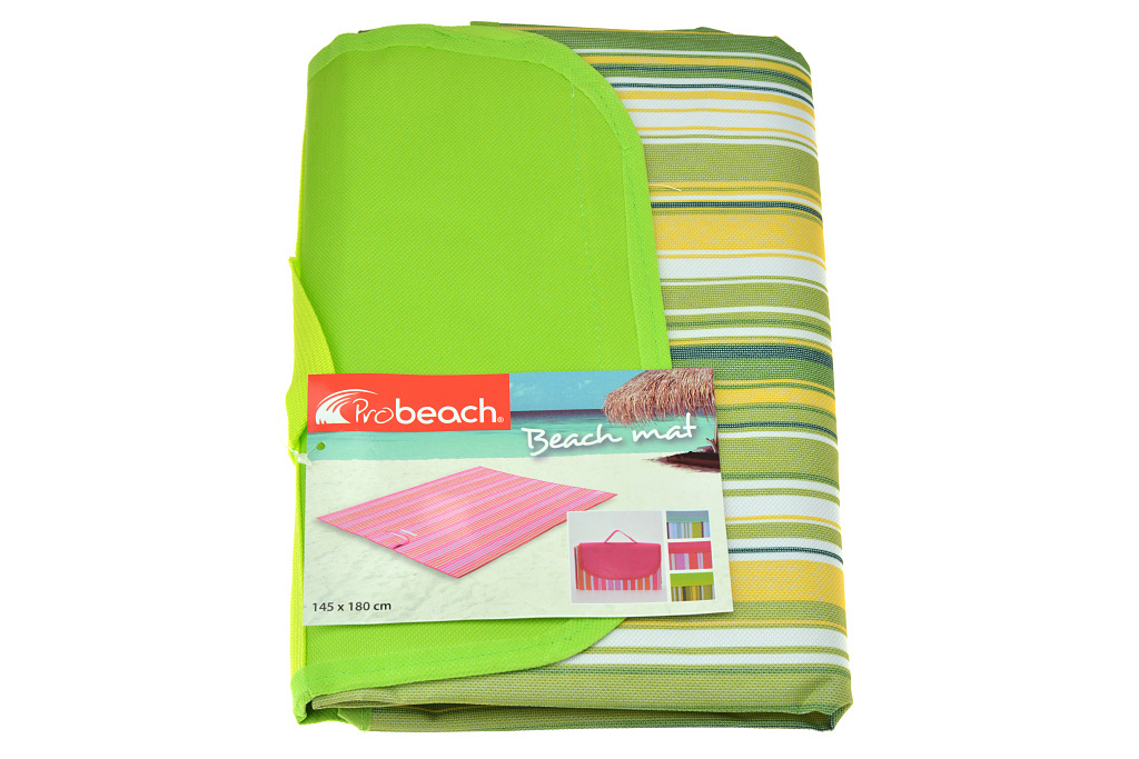 Praktická skládací plážová podložka má rozměr 145x180cm v rozloženém stavu a ve složeném stavu 30x20cm. Podložka drží ve složeném stavu díky suchému zipu a lze přenášet jako tašku, je totiž opatřena uchem.