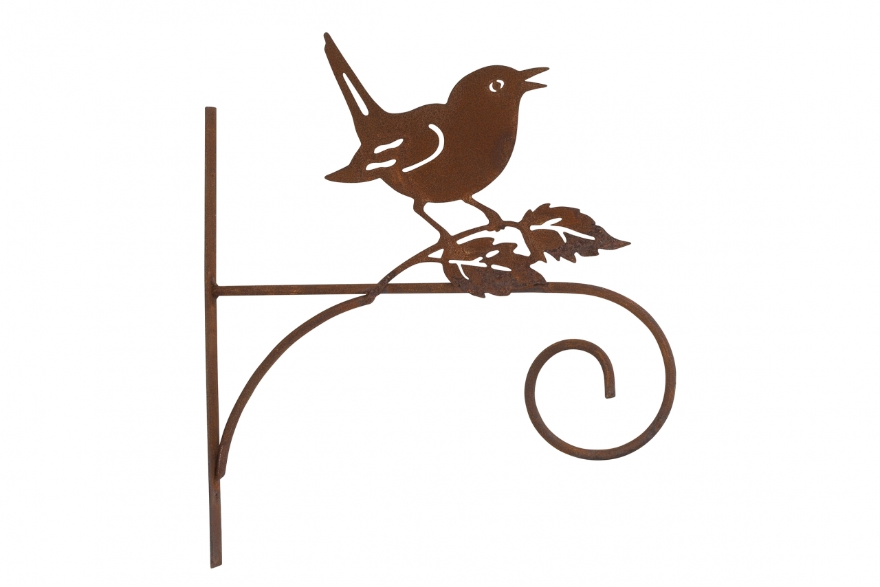 Kovový držák Chip rez s ptáčkem na závěsný květináč 31x27,5x1,5 cm