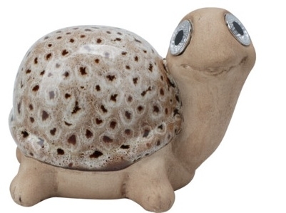 Oživte a rozsviťte vaši zahradu dekorační solární figurkou ve tvaru želvy. Světlo se automaticky během tmy zapne a za úsvitu opět vypne. Dvě světla jsou zabudována v očích zvířátka. Baterie je součástí balení.