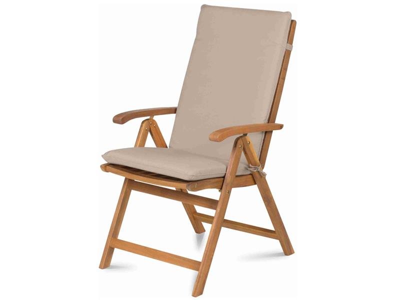 Vodě odolné potahy vyrobené ze 100% polyesteru. Rozměry: délka sedáku 42 cm, délka zádové opěrky 68 cm, šířka 45 cm, tloušťka 5 cm. Určeno pro venkovní použití.