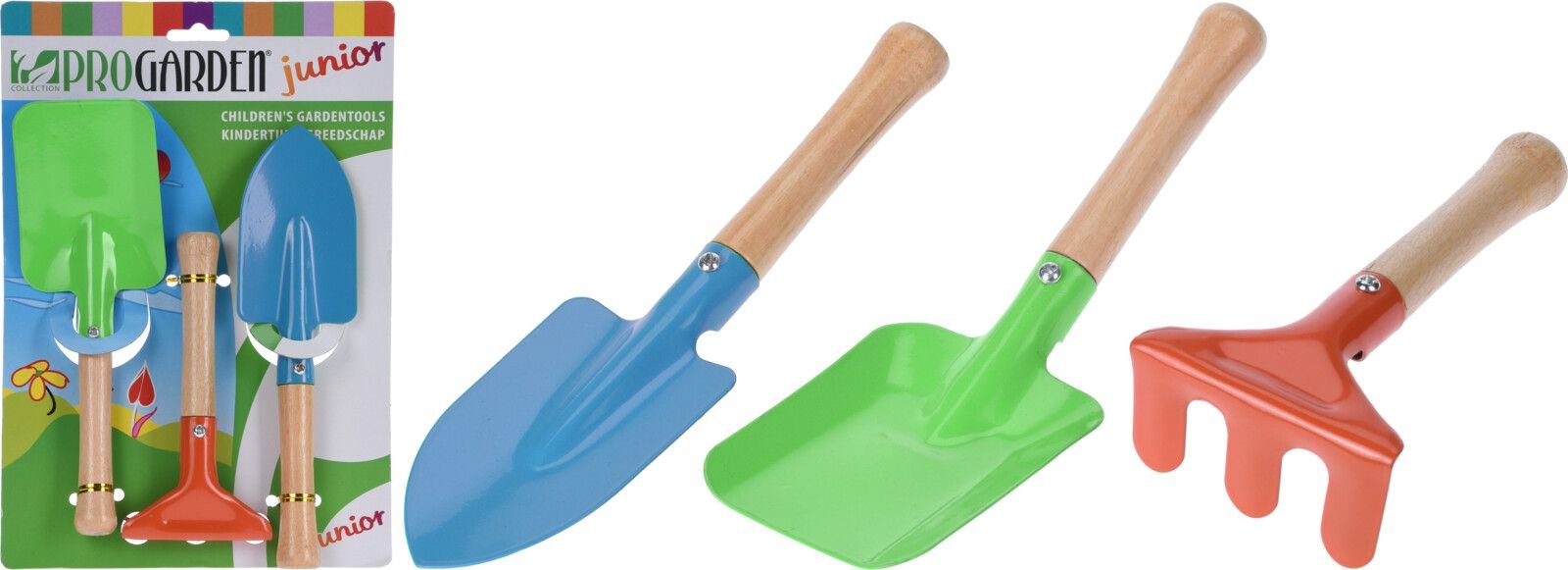 Krásné a praktické barevné nářadí pro děti, které rády pomáhají na zahradě. Nářadí je kovové a má dřevěné násady. Vhodné pro děti od 3 let. číst celé