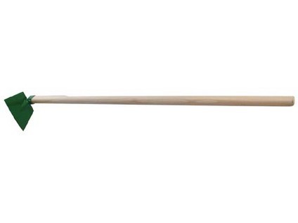 Motyka na řepu se širokou okopávací plochou pro odstraňování plevele a kypření půdy na zeleninovém záhonu okolo rostlin.