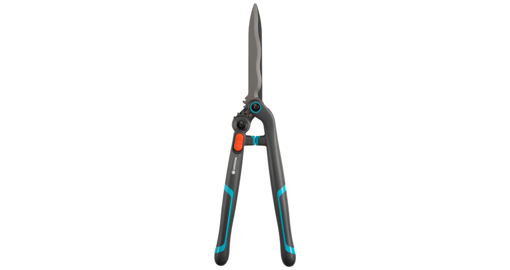 GARDENA nůžky na živý plot EnergyCut přesvědčí svou jedinečnou funkcí 2 v 1, díky níž nabízí nejlepší kombinaci rychlé a výkonné práce s vysokou účinností. Při stříhání živých plotů, keřů nebo křovin se může stát, že se do nůžek dostane velká větev: v těchto případech stačí stisknout tlačítko a aktivovat dodatečnou sílu! Zvýšením úhlu otevření vytvoříte dodatečnou sílu větší pákou.
