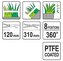 Tento nástroj o délce 310 mm se snadno přizpůsobí vašim potřebám díky 8 pozicím nastavení a otočné hlavici o 360 stupňů, která umožňuje stříhat trávu pod libovolným úhlem. Ostří nůžek je potažené PTFE, což zajišťuje hladké a přesné střihy bez přilepování a zároveň lepší odolnost. Rukojeti jsou opatřeny protiskluzovou ochranou, která zaručuje pohodlné a bezpečné držení i při delší práci na zahradě.