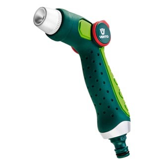 Verto pistolový postřikovač 15G709 Pistolový postřikovač značky Verto umožňuje nastavení průtoku vody palcem. Nastavitelná hlava umožňuje nastavení tvaru proudu vody od mlžného proudu až po silný proud. Ergonomická rukojeť skvěle padne do ruky a neklouže, což zvyšuje komfort při práci.Parametry: Typ zahradního náčiní: postřikovač Průměr připojované hadice: 12.7mm (1/2/")