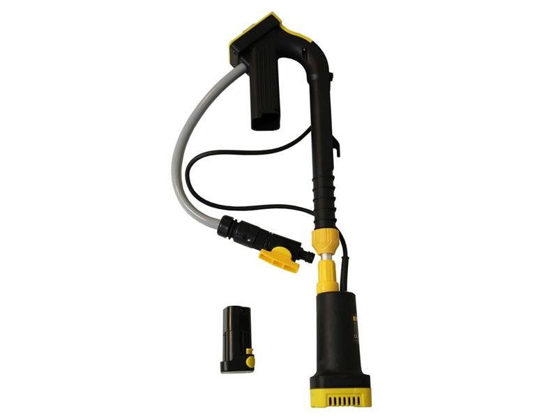 Aku čerpadlo do sudu na dešťovou vodu 50 W. Čerpadlo ocení vlastníci malých zahrádek u domu nebo v zahrádkářských koloniích. Elastická koncovka s ventilem pro připojení zahradní hadice. Plastový držák pro snadné zavěšení za hrdlo nádoby. Toto čerpadlo se používá k odčerpání dešťové vody bez hrubých nečistot. Používá se také, když je nutné přepravit dešťovou vodu ze sudu na jiné místo, např. do domu, do zahrady, do instalatérství a spoustu dalších míst. Mimimální průměr otvoru nádoby pro vložení čerpadla činí 95 mm. Maximální čas provozu čerpadla na 100% nabitý akumulátor činí 40 min.