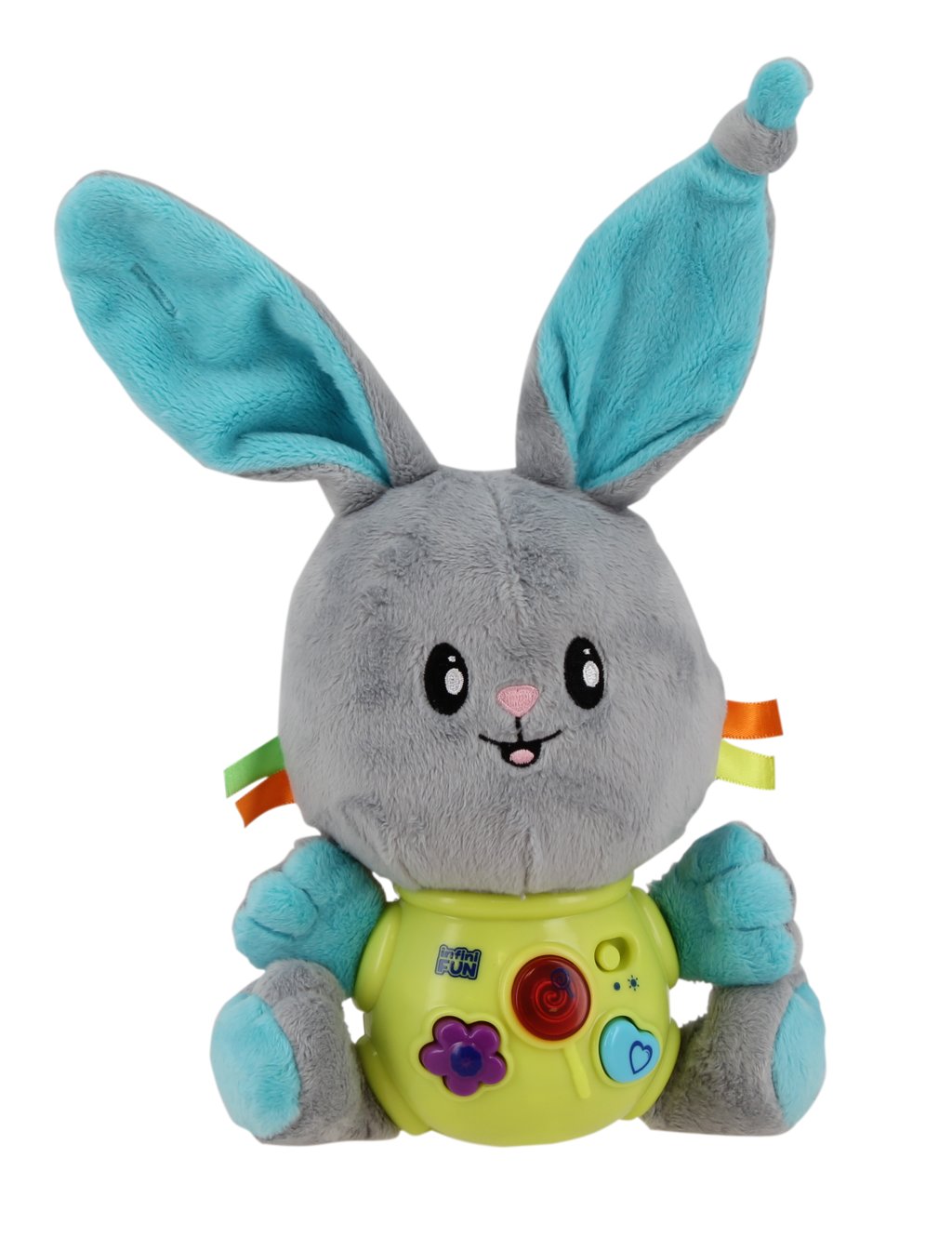 uvázání uší. Obsahuje 3 tlačítka s množstvím zábavných zvuků.